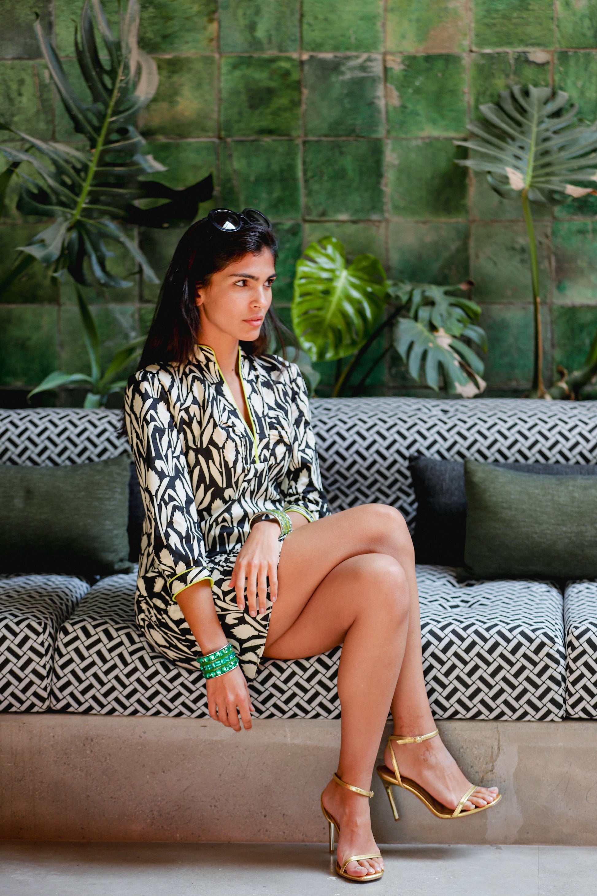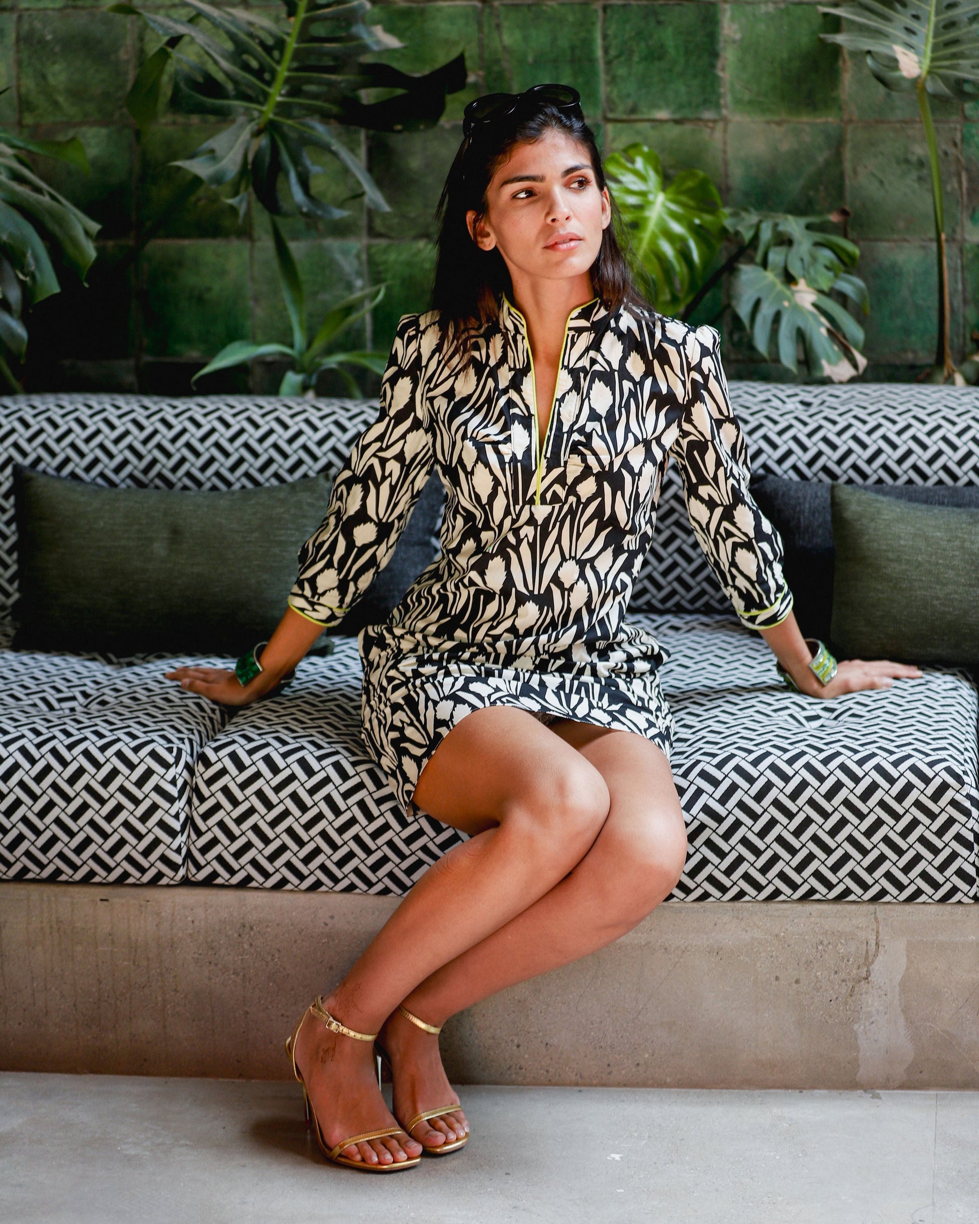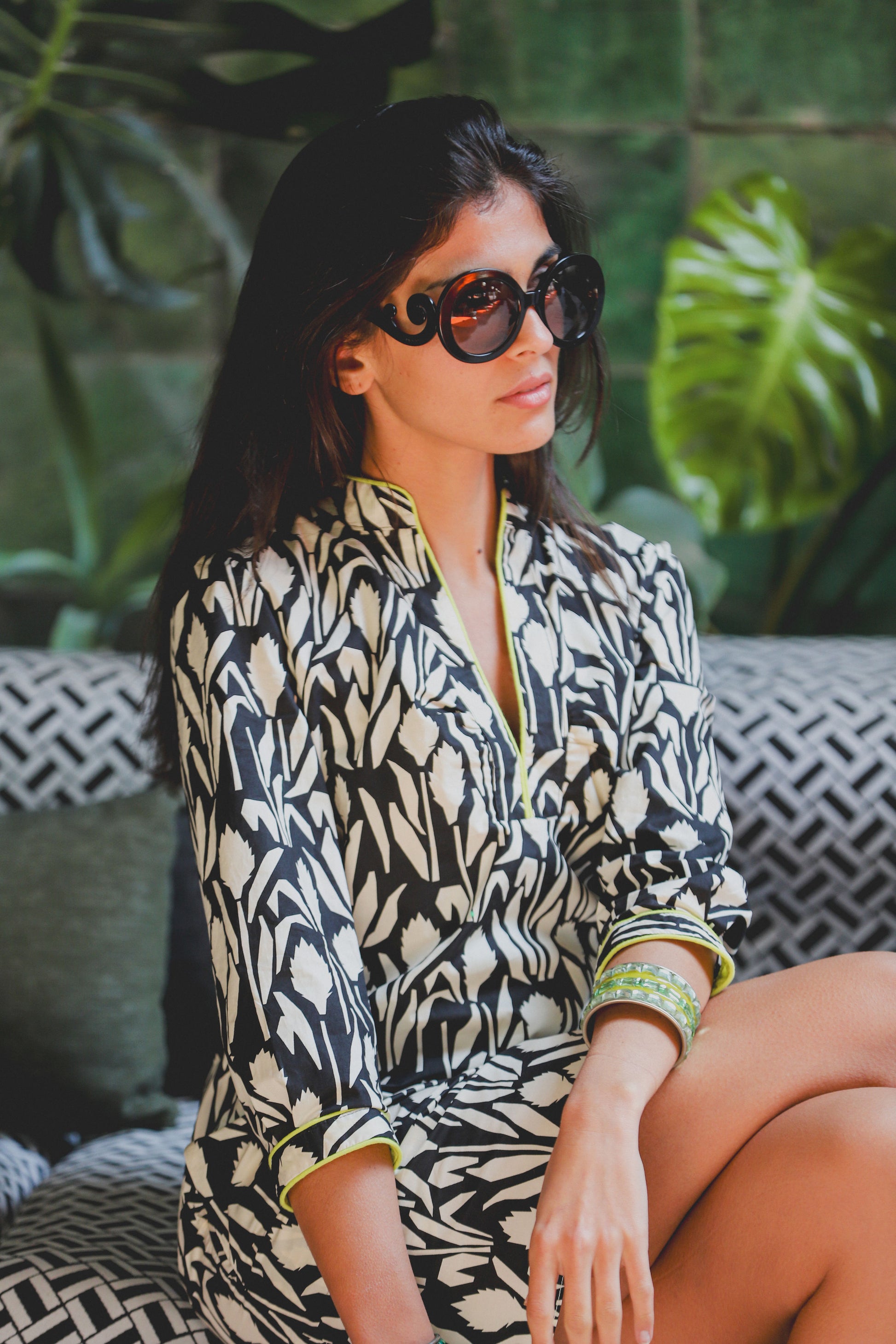 En algodón negro con un pequeño estampado de corazones color crema por todas partes, este vestido camisero largo súper favorecedor está cosido en el centro delantero desde arriba del busto hasta debajo de la entrepierna para que no se abra de repente cuando lo uses.