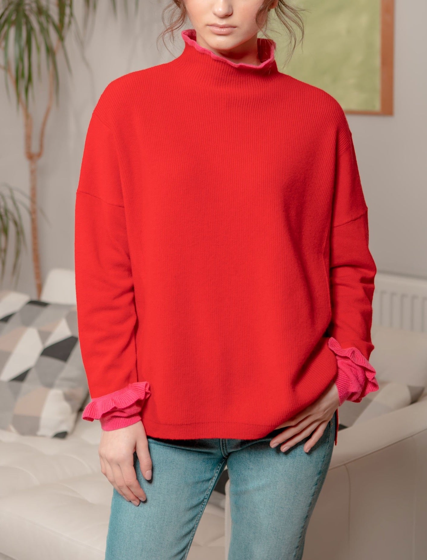 El cuerpo acanalado con paneles laterales y mangas de punto liso completan este llamativo diseño. Está confeccionado con nuestro suave hilo de mezcla de cachemira sostenible de lujo y es ideal para todas las estaciones. Combina a la perfección con pantalones cargo de cuero o minifalda para lograr un look moderno.