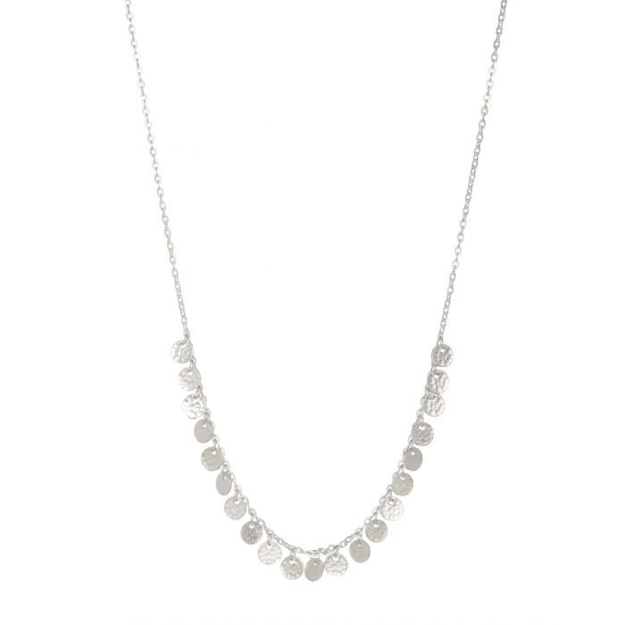 Este clásico collar corto está bañado en plata y terminado con hileras de nuestros característicos discos de monedas. Este estilo es diverso, ya que los collares se pueden usar juntos para crear el efecto de capas o por separado, ya que no están unidos.