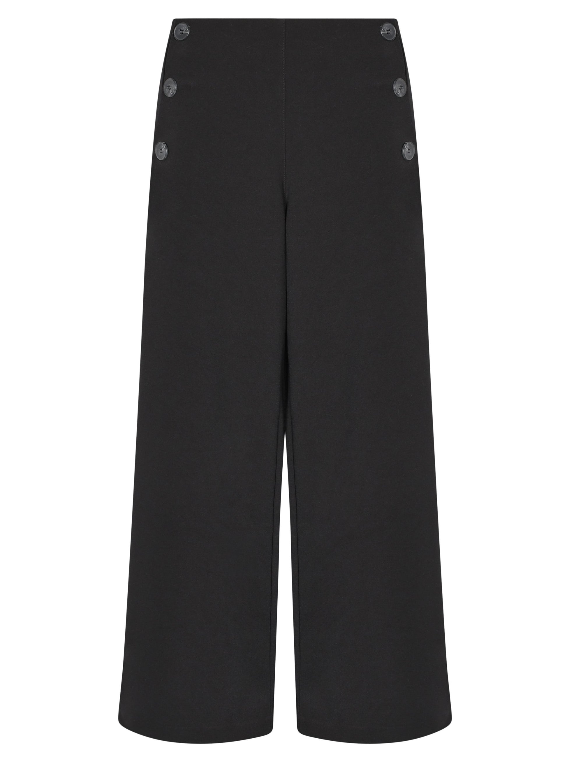 Pantalón ancho negro Cropped en crepe de poliéster con detalle de botones en cintura/caderas.