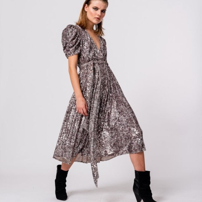 La robe Zena scintille lorsque vous marchez, avec un bel effet peau de serpent irisé dans des tons de violet et d'argent avec un décolleté en V sur le devant, vous choisirez un spectacle à couper le souffle, un bel ajout à notre collection XOX Labels.