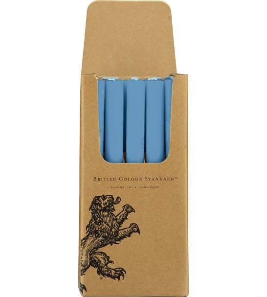 Our eco, fair trade dinner candles, hand poured in British Colour Standard Medici Blue. Medici porcelain was the first successful attempt in Europe to make imitations of Chinese porcelain. The experimental manufactory housed in the Casino of San Marco in Florence existed between 1575 and 1587 under the patronage of Francesco l de' Medici, Grand Duke of Tuscany. Following the precedents of classic Chinese blue and white, decorations were painted in under-glaze blue, which resulted in a range of hues when fired—from a bright cobalt blue to grey.