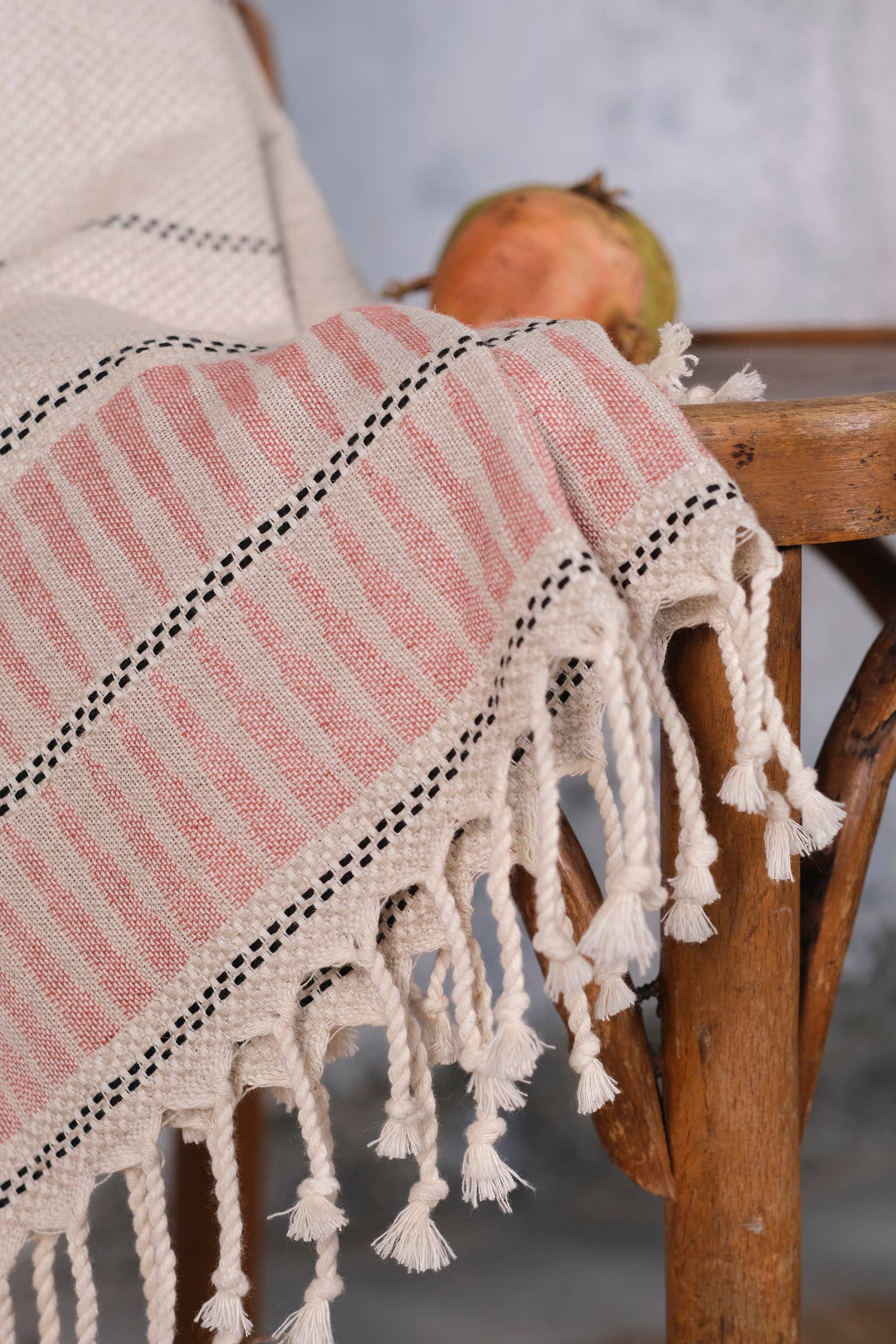 Lovely cream linen/cotton hand towel with pinky red and black woven detailing. Perfect for a kitchen, bathroom or a great little gift at a fab price